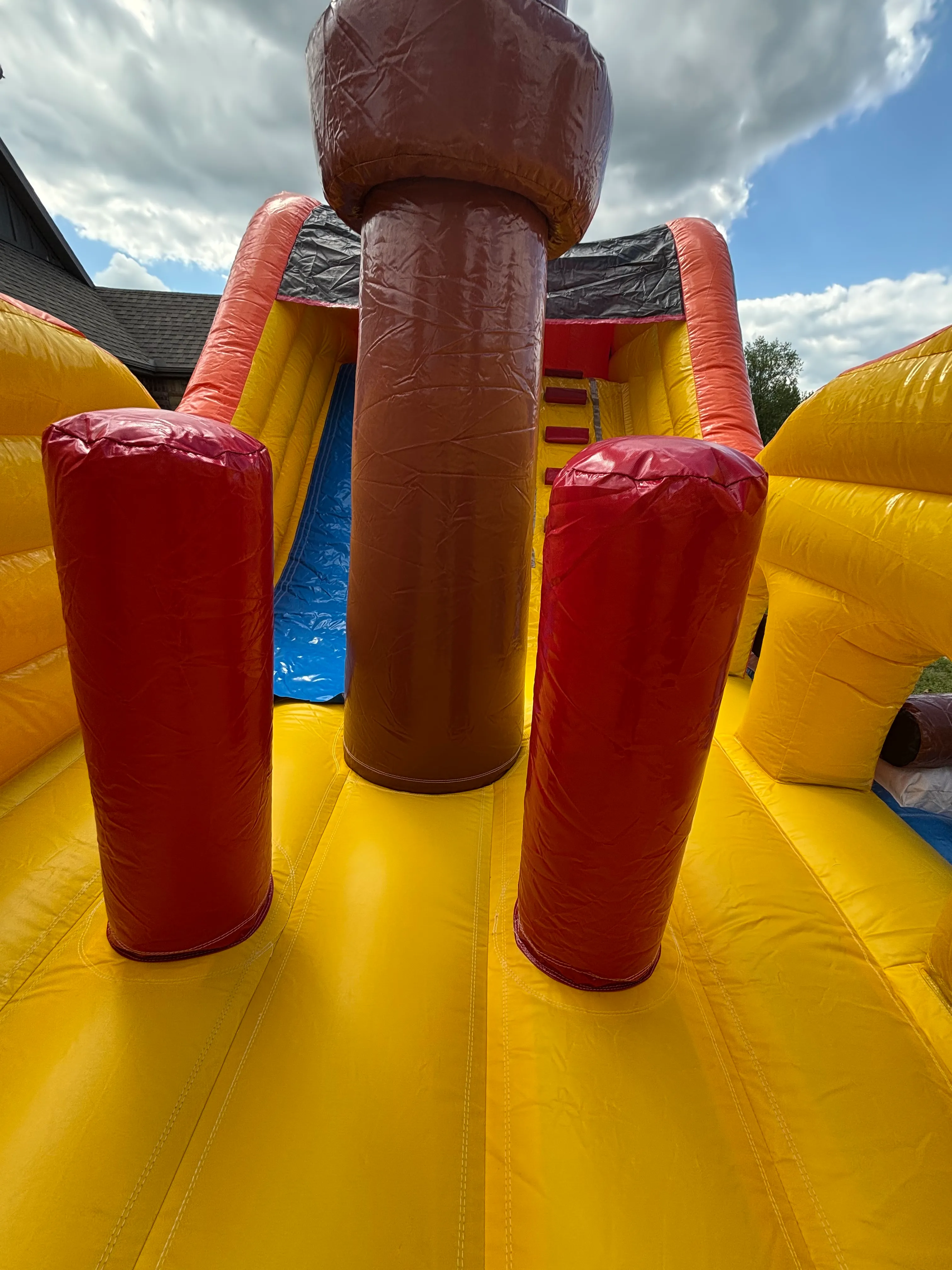 Safety: The extra tall sides prevent bouncers from bouncing out. The port holes are covered by extra sturdy netting that allows supervision. The slide is single lane so you don't have to worry about collisions. Also it is an open air inflatable so if there is deflation no worries about little ones getting trapped. Also, impact padding at the entrance/exit to prevent head/neck injuries.