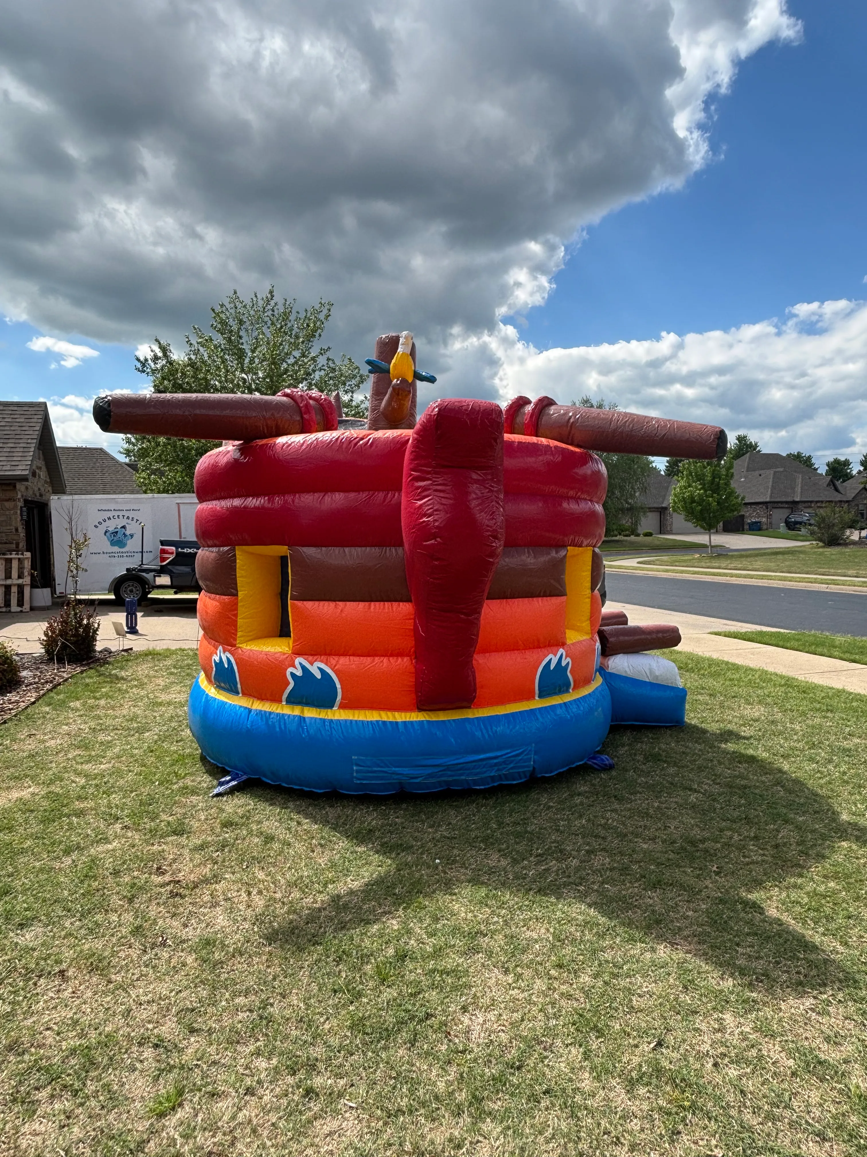 Ahoy, adventurous souls! Set sail on the high seas with our exclusive Pirate Ship bounce rental, perfect for creating unforgettable memories and thrilling escapades. Whether you're planning a unique event, a themed party, or a daring day, our Pirate Ship offers an experience like no other. Let the kiddos imagine the thrill of standing at the helm, navigating the open waters, and seeing themselves as a legendary pirate captain. It's ideal for birthdays, corporate/church events, or simply a day of swashbuckling fun.
