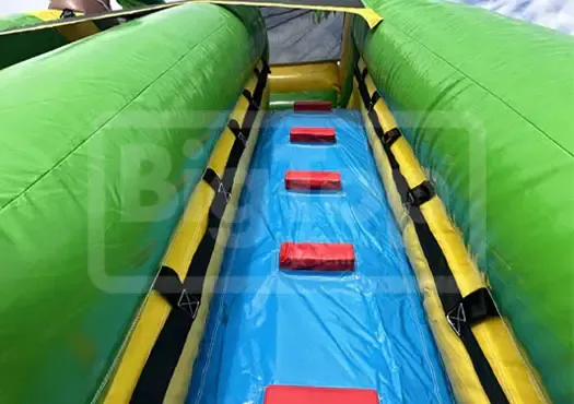 SAFETY: Stairs and hand rails for little hands and feet to prevent slipping while climbing. Reinforced netting prevents kiddos from "jumping off the top rope" and prevent jumping onto the slide. Finally, impact mats on the exit help prevent head and neck injuries.
