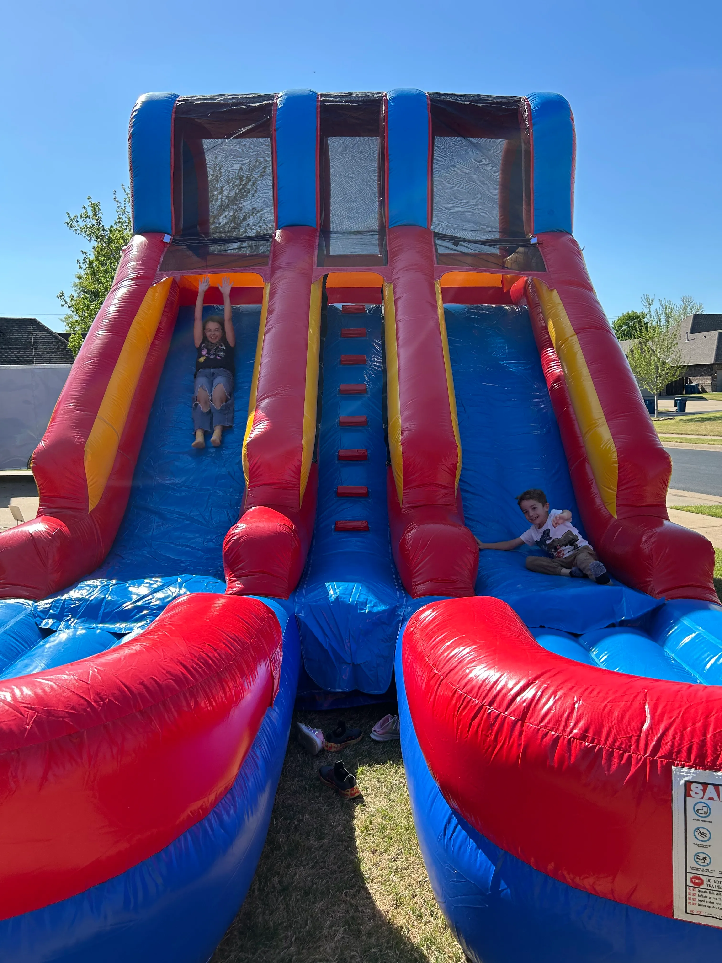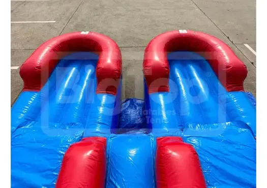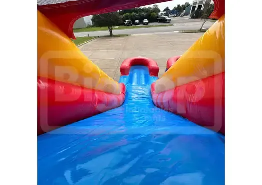 Turn up the summer excitement with our 15' Red n Blue Party Fun Water Slide with Splash Landings! Perfect for backyard bashes, birthday celebrations, or just because, this vibrant water slide promises hours of exhilarating fun for kids and adults alike. Standing at an impressive 15 feet, this slide is a towering beacon of thrill and adventure. Its bold red and blue colors add a festive flair to any event, making it a centerpiece of fun and laughter. Climb up the sturdy, easy-to-grip steps, and get ready to make a splash! The refreshing ride down ends in a delightful splash landing, creating endless giggles and memories. Safety is our priority, so the slide is crafted from durable, high-quality materials designed to withstand hours of play. The non-slip climbing surface and secure sidewalls ensure a safe and enjoyable experience for everyone. This inflatable water slide is perfect for transforming any outdoor space into a mini water park. Just connect your garden hose, and let the fun begin! Rent the 15' Red n Blue Party Fun Water Slide today, and make your next gathering an unforgettable splash hit!