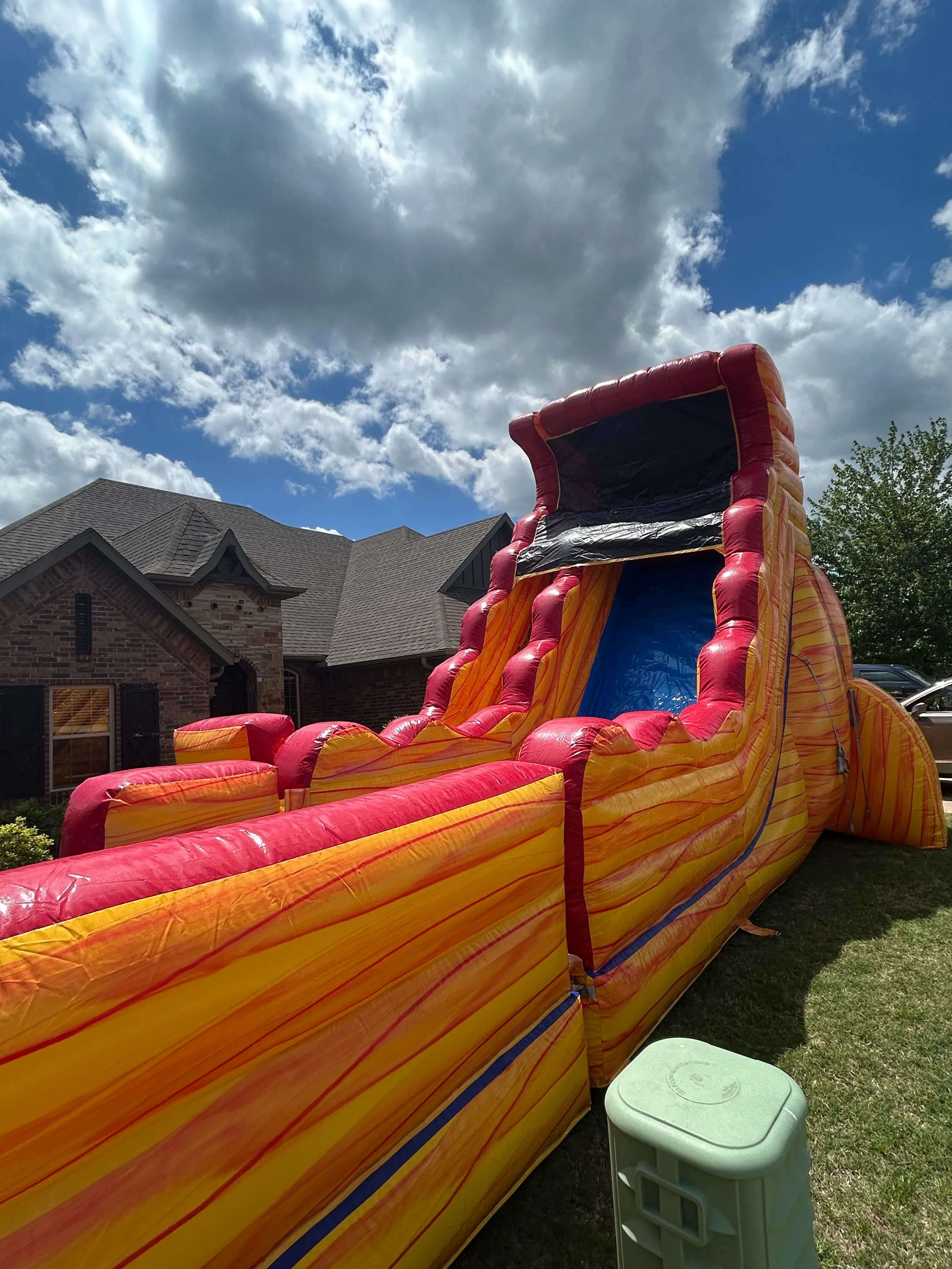 Unleash the ultimate summer adventure with our 18' Volcano Water Slide with Detachable Pool, now available for rent! Perfect for backyard parties, family gatherings, and neighborhood events, this thrilling inflatable promises endless fun and excitement for all ages. Standing at an impressive 18 feet, the Volcano Water Slide is designed to capture attention and spark joy. The vibrant colors and volcano theme create an exhilarating atmosphere, making every slide feel like a tropical adventure. Climb to the top, take in the view, and then let gravity whisk you away down the slippery slope, ending in a refreshing splash in the detachable pool. Safety and quality are our top priorities. Constructed with durable, commercial-grade materials, the slide is both robust and secure, ensuring peace of mind for parents and hours of uninterrupted play for kids. The detachable pool adds versatility, allowing for easy setup in any space and providing a cool oasis to beat the summer heat. Easy to set up and dismantle, our Volcano Water Slide comes with everything you need for a hassle-free experience. Book today and transform your event into an unforgettable adventure that will have everyone talking long after the sun sets!