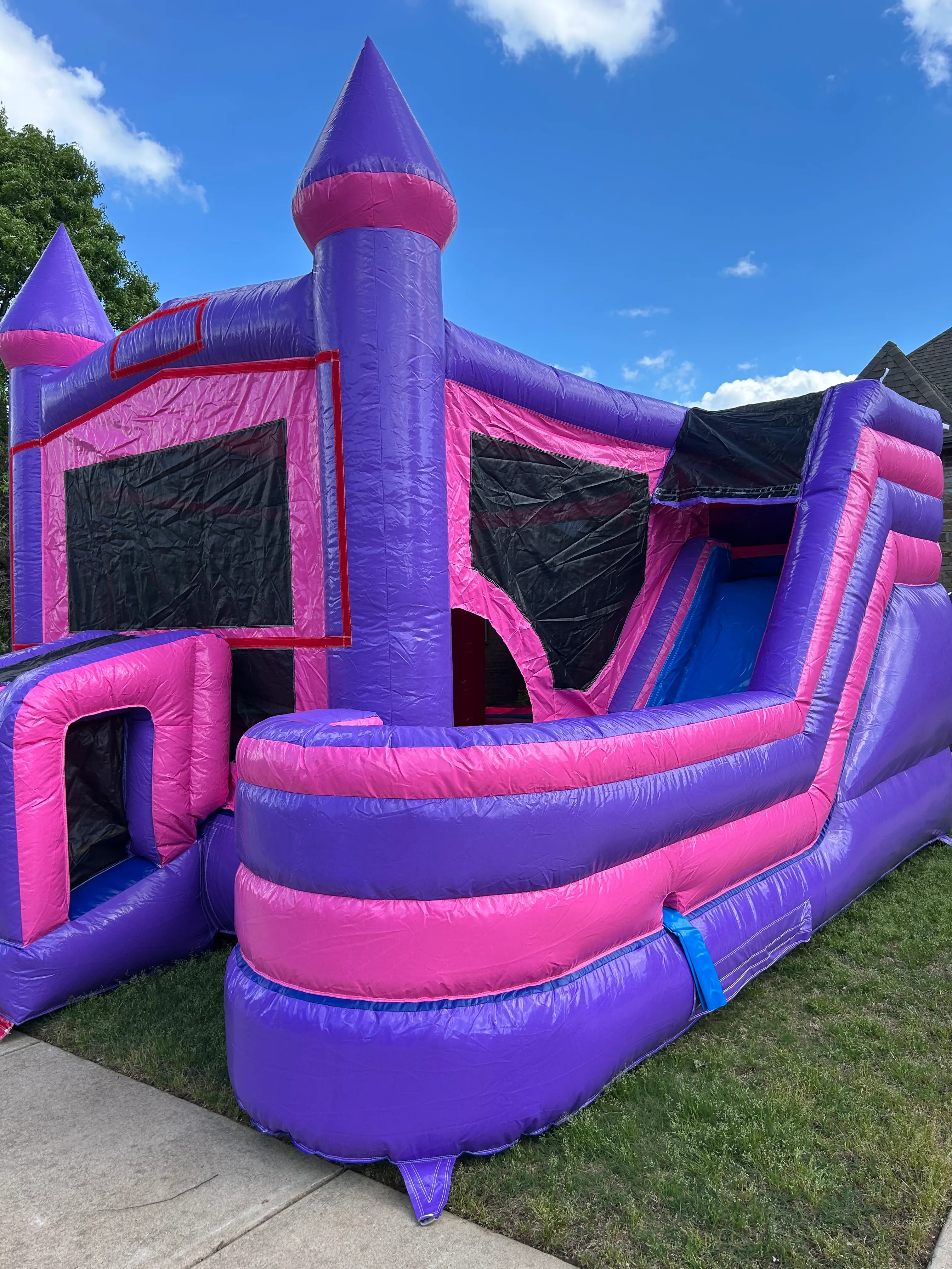 Welcome to a world of enchantment and endless fun with our Pink Castle Inflatable Combo! Perfect for birthday parties, family gatherings, or any special occasion, this vibrant inflatable promises to transform your event into a magical adventure. The stunning pink castle design captures the imagination, inviting little princes and princesses to explore a realm of excitement. Inside, the indoor playground offers a variety of activities, from bouncing to climbing, ensuring hours of entertainment. The highlight of this inflatable is the exhilarating slide, providing a thrilling descent that kids will want to experience again and again. Safety is our top priority, and our Pink Castle Module is crafted from durable, high-quality materials, with reinforced seams and a secure anchoring system to ensure a safe and enjoyable playtime. Easy to set up and take down, this inflatable combo is designed for convenience and hassle-free fun. Book the Pink Castle Module Inflatable Combo today and watch as your little ones' faces light up with joy. It's not just a rental; it's a gateway to a world of imagination and laughter. Perfect for creating unforgettable memories, this inflatable combo is the ultimate addition to any celebration!