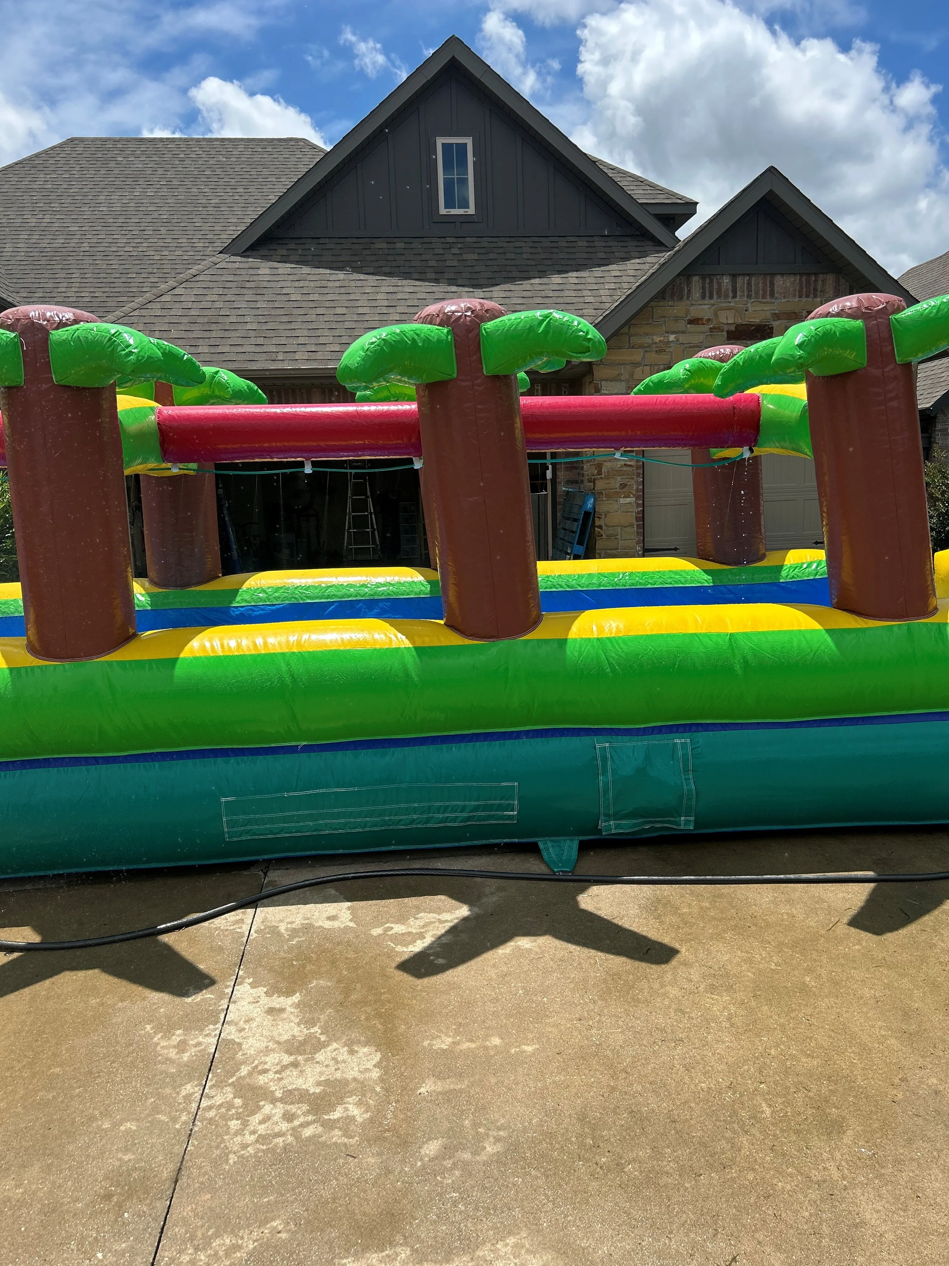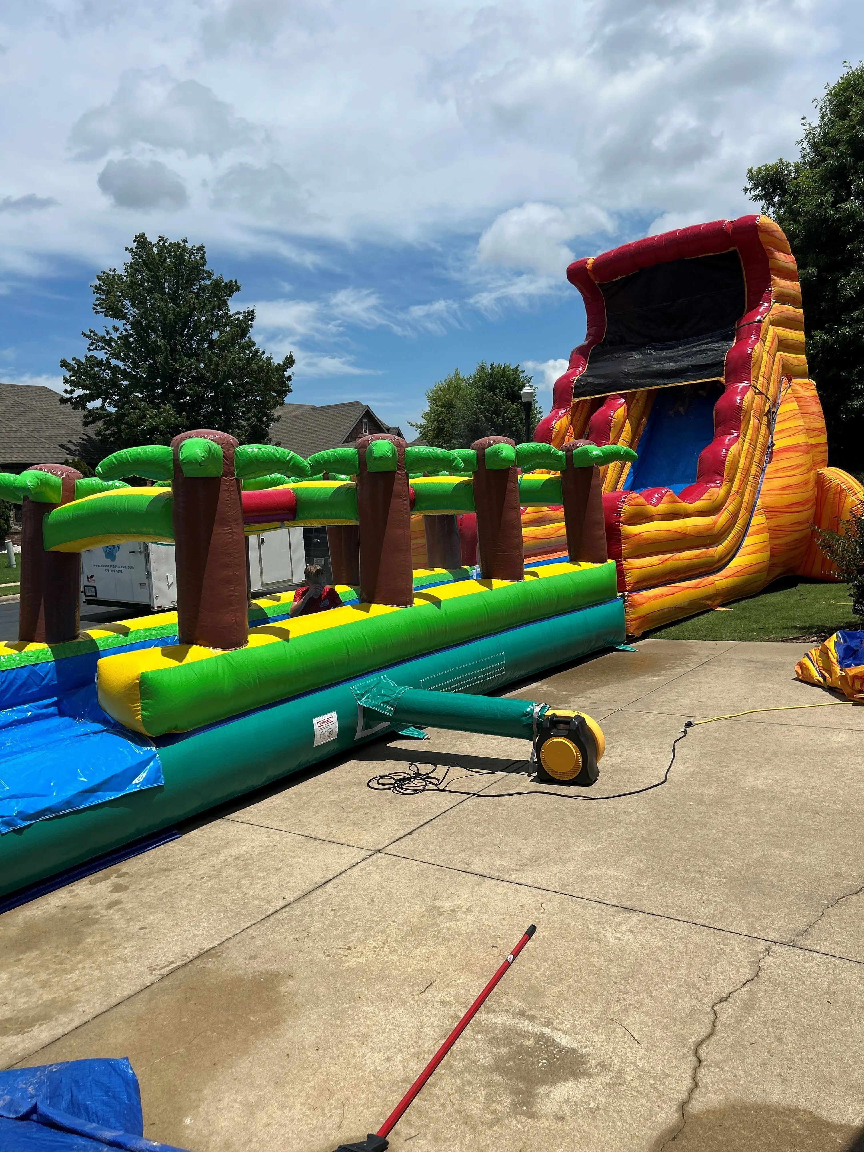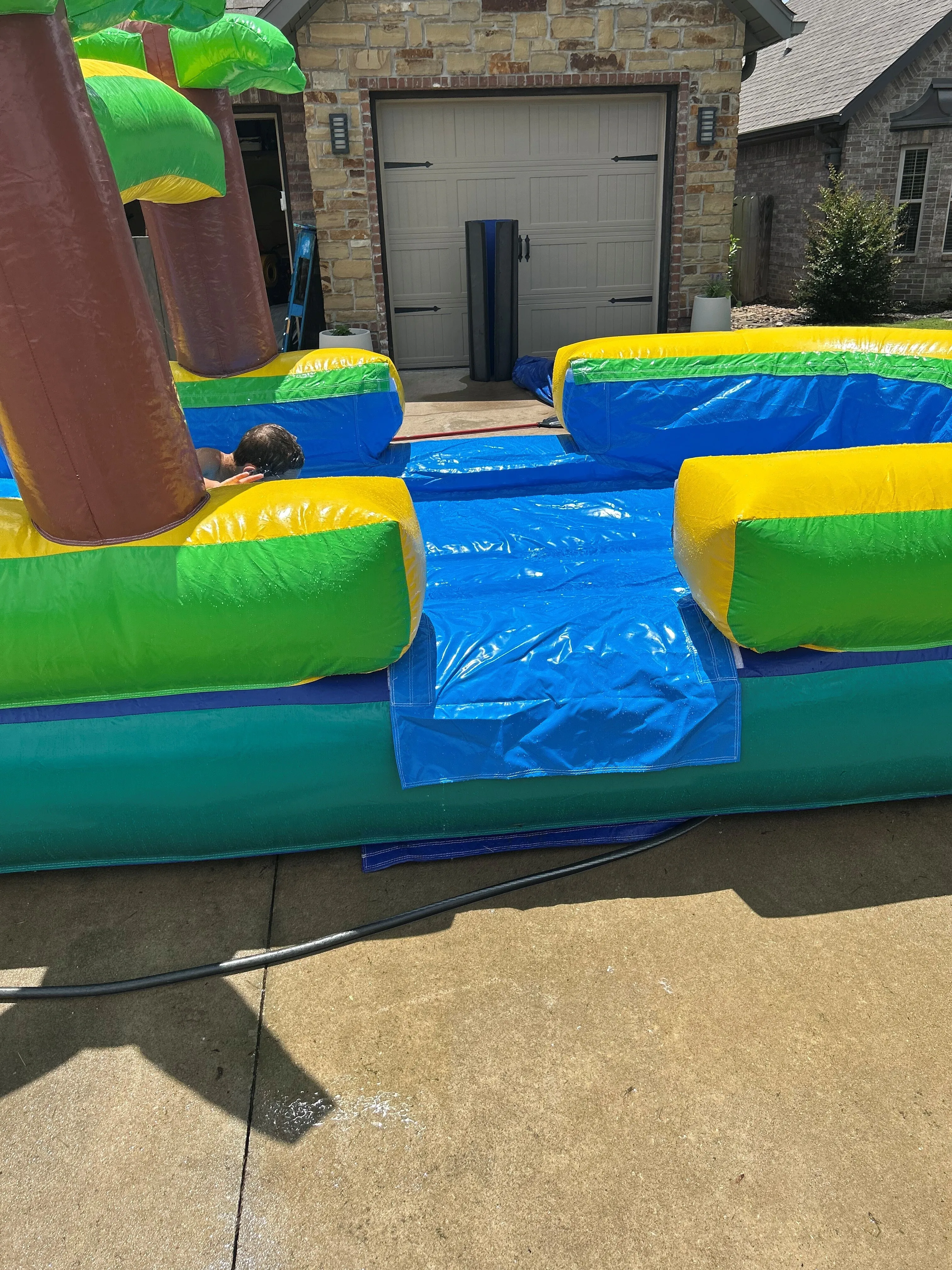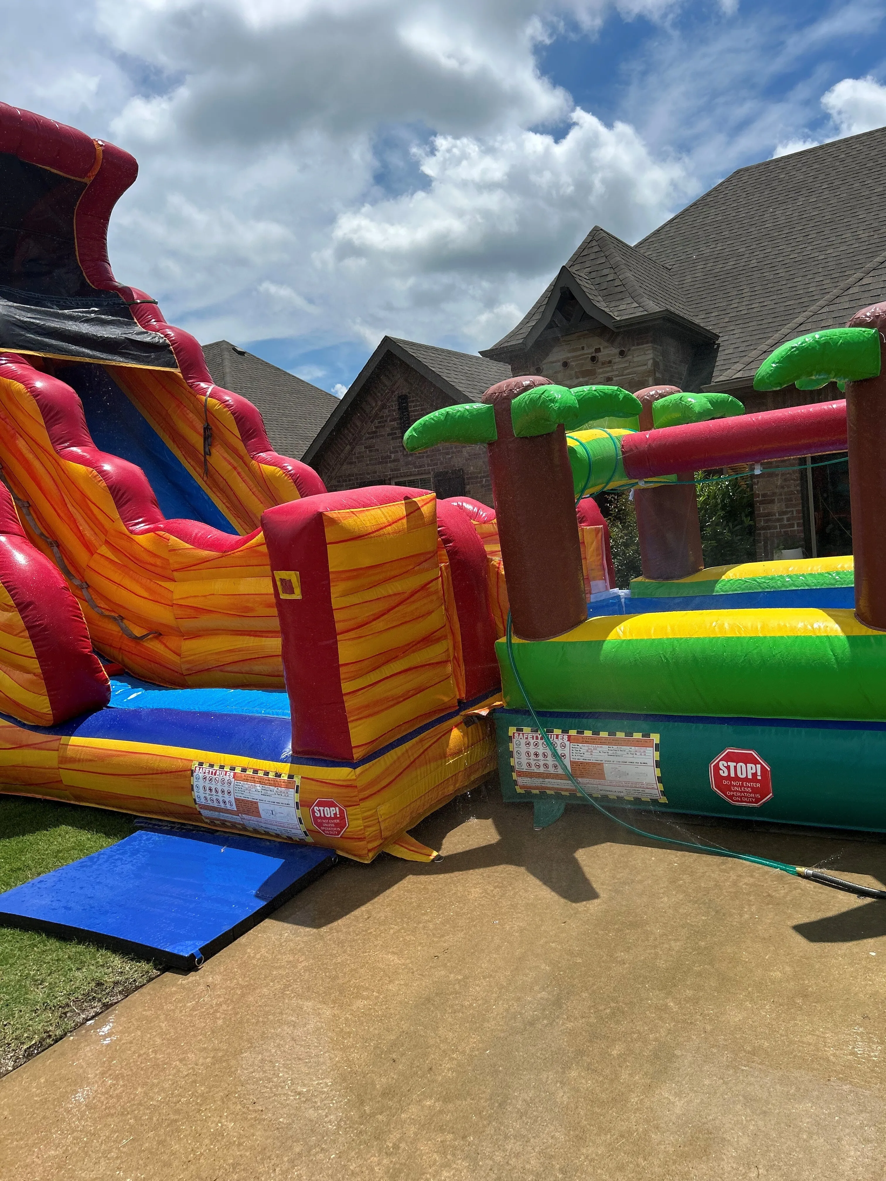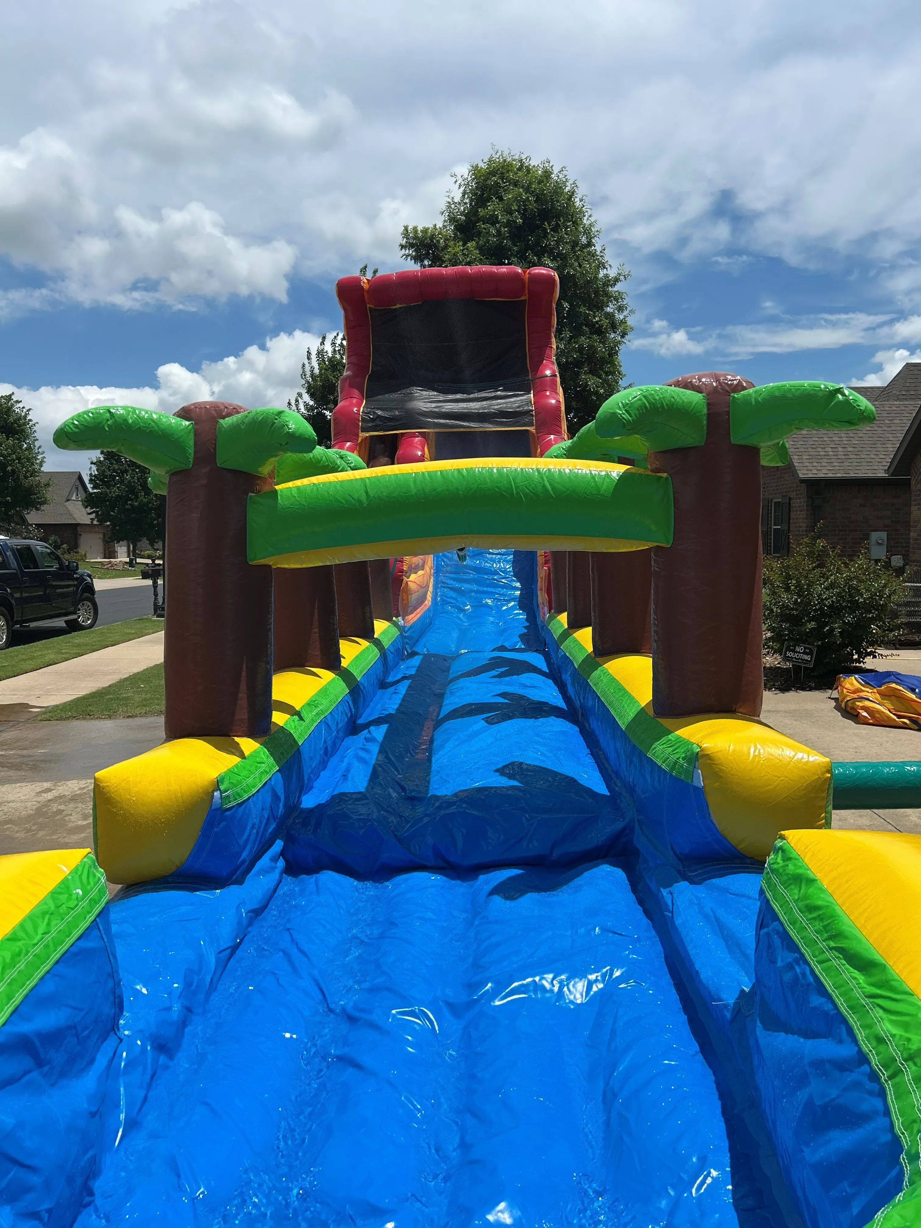 This bundle has been called "Slidezilla" by the kids who use it. We take a 18' big slide and add 28' of slip and slide with a pool at the end..... WHICH IS AWESOME! Have the ultimate water experience for your party.
